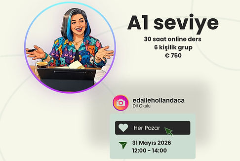 A1 Kursumuzda Pazar günleri 12:00-14:00 arasında ders yaprak Taal Compleet kitabının A1 seviyesini bitireceğiz.